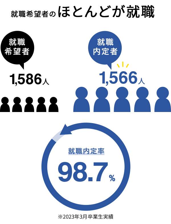 全キャンパスに就職相談と企業斡旋を行う専門スタッフを配置し、学生一人ひとりと向き合えるように万全を期しています。就職活動に役立つセミナーも充実。学部1年生から参加できる講座など、学生一人ひとりとしっかり向き合いながら満足度の高い就職へと導きます。