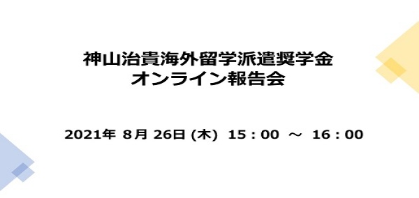 神山治貴海外留学派遣奨学金 奨学生によるオンライン報告会の開催