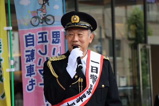 秋の全国交通安全運動が9月21日より始まり、内藤署長が交通ルールの順守、自転車に乗る際のヘルメット着用を訴えました。