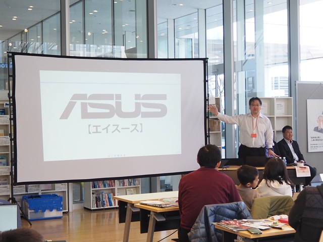 始めに、本講座のためにノートPCをご準備いただいたASUS JAPAN株式会社様より会社概要並びにパソコン、またソフトウェアについてお話をいただきました。