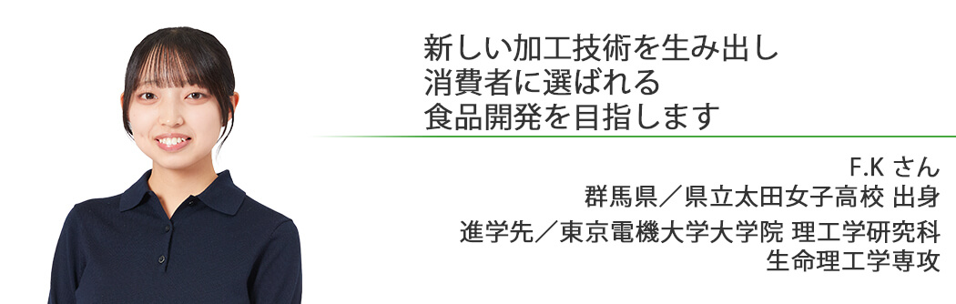 憧れていた食品と医薬品の両分野を学べ、就職にも強く、自分の将来を明確に描け