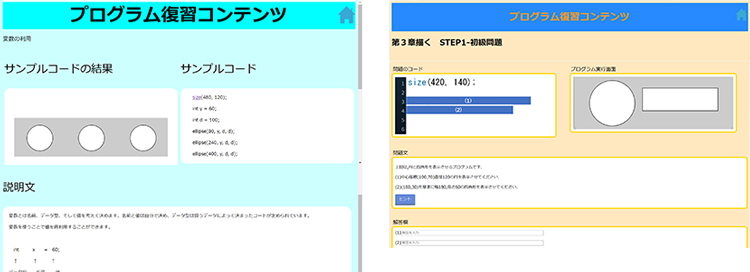 授業復習支援サイトの一画面。3人一組で制作し、完成しているページは公開済み。