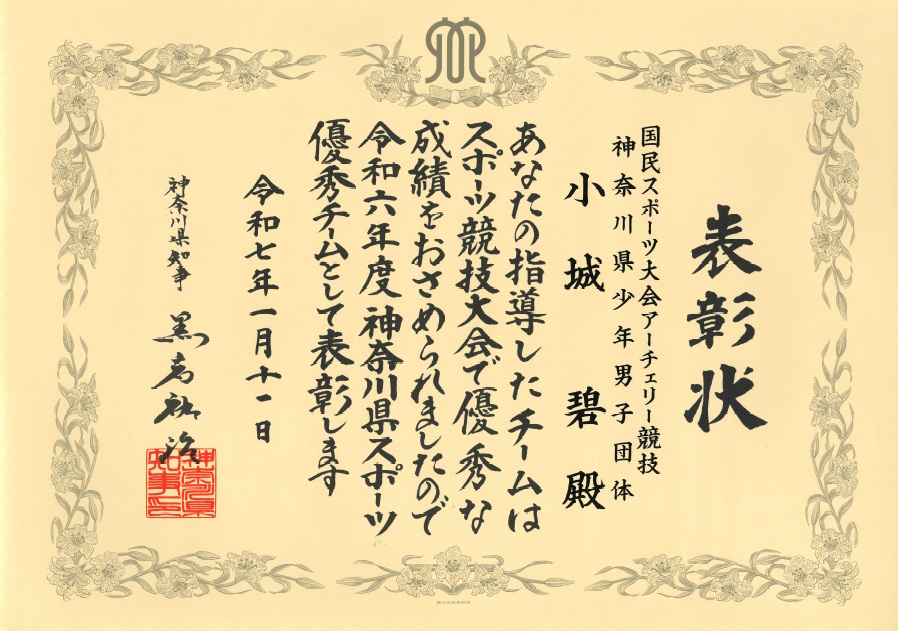 その功績により、「令和6年度神奈川県スポーツ優秀チーム」の監督として表彰を受けました。