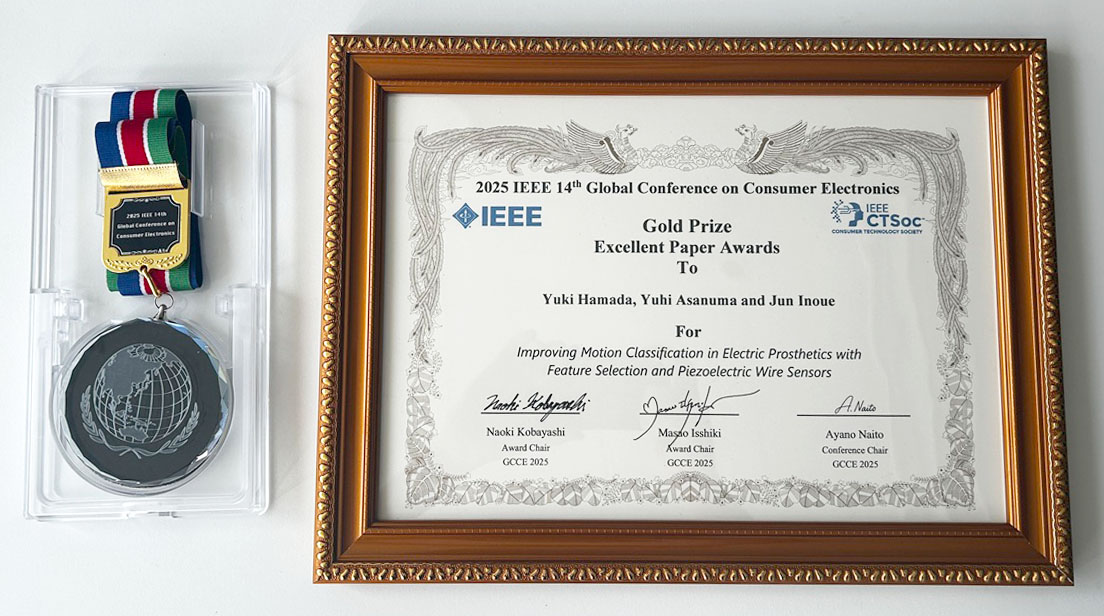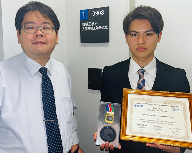 9月23日~26日に大阪で開催された2025 IEEE 14th Global Conference on Consumer Electronics (GCCE 2025)において、工学研究科 機械工学専攻 濱田優生さんがExcellent Paper Awardを受賞しました。