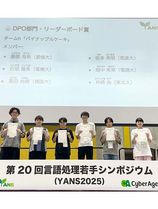 トップ> 活躍する電大人> データ科学・機械学習研究室のメンバーが「YANS2025」で受賞