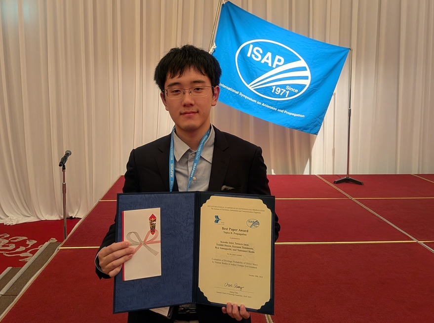 10月27日から31日に福岡で開催された、電子情報通信学会主催のアンテナ・伝搬に関する国際会議ISAP2025にて、工学研究科 情報通信工学専攻の石井洸助さんが、Best Paper Award を受賞しました。
