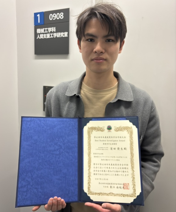 11月8日~9日に新潟で開催された第41回日本義肢装具学会学術大会において、工学研究科 機械工学専攻 濱田優生さんが最優秀学生演題賞を受賞しました。