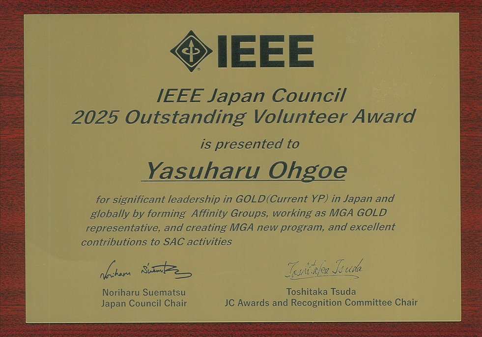 理工学部 電子情報・生体医工学系の大越康晴教授が「IEEE Japan Council 2025 Outstanding Volunteer Award」を受賞しました。