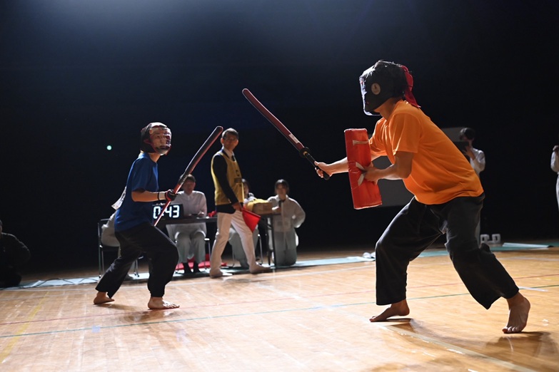 学生のスポーツチャンバラ大会であり、春季関東大会などの地方大会で上位30%の成績を残した人が参加できる「スポーツチャンバラ全日本学生大会」。スポーツチャンバラでは12種目の武器の試合と基本動作の型があり、それぞれの順位を争います。グランドチャンピオン戦では各武器別の優勝者同士が争い、大会のチャンピオンを決定しました。