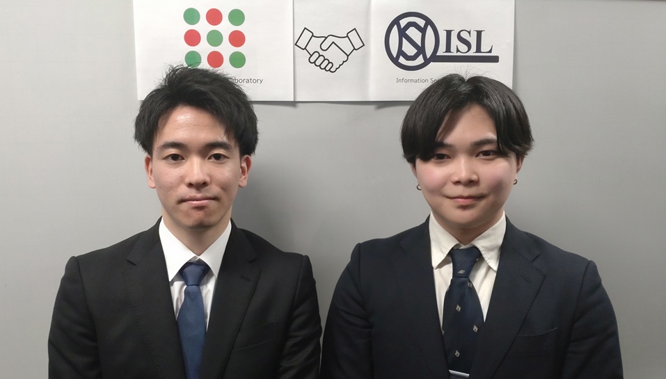左:安西穂高さん(メディアインタフェース研究室)と、右:二子氣粋さん(情報セキュリティ研究室)