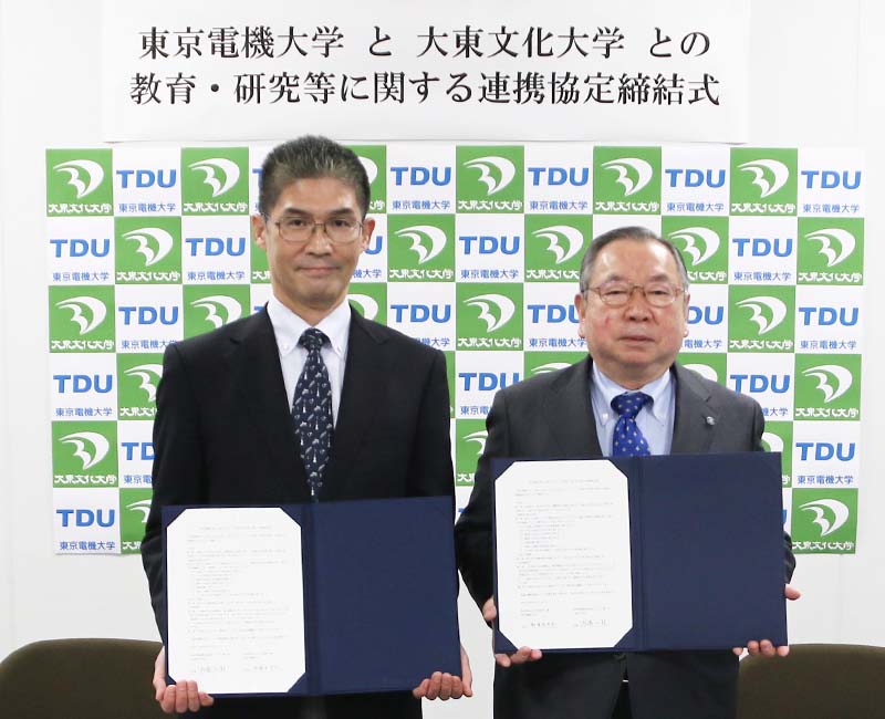 大東文化大学(東京都板橋区 学長:内藤二郎)と東京電機大学(東京都足立区 学長:射場本忠彦)は2022年12月7日、教育・研究等に関する包括的連携協定を締結した。これは、両大学の学生・教職員の交流等を通じて、教育・研究等に関して相互に連携協力し、両大学の発展に資することを目的としている。締結式は12月7日に大東文化大学東京板橋キャンパスで執り行われた。