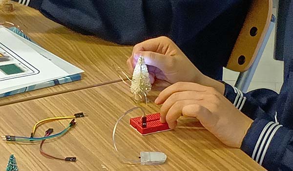 湘南⽩百合学園で「LED を使⽤した電⼦⼯作−Xʼmas イルミネーションの仕組みを知ろう」を12⽉22⽇に開催しました。この講座では⽇ごろ⼯学に接する機会の少ない中⾼⽣がものづくりを体験し、社会を⽀える⼯学に触れることを⽬的にしました。