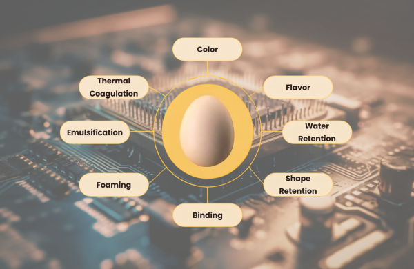 一方で近年、鳥インフルエンザの流行や飼料価格高騰などを背景に、卵の供給不安や価格高騰が世界的な課題となっています。こうした状況の中、植物由来原料を用いた代替卵の研究開発が進められていますが、卵が持つ複雑な機能性を再現することは依然として技術的な課題となっています。